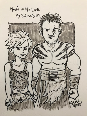 George Farmer sat beside us, and he kindly drew Deek and me as Khal Drogo and Khalessi from Game of Thrones. I could *not* have been more pleased with the result!!