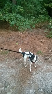 The lady who keeps our pup while we're at cons texted a picture of him on his walk.<squeezey heart>