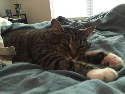 This weekend, we had a lazy weekend (I think we're still exhausted from the move/living in a hotel/job hunting because we STILL haven't felt like adventuring). Deek said, "If we had a house, we might be doing yard work right now, but instead, we're writing and taking selfies with our unamused cat. I love this life!"