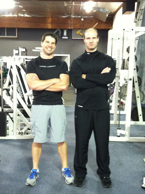 Deek at the gym with his very serious trainer!