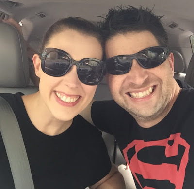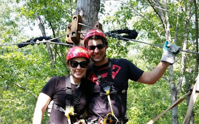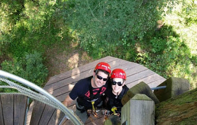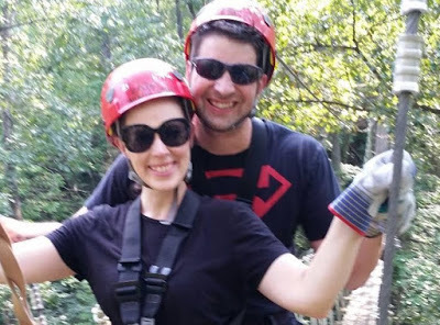 Headed out to zipline! (Note the genuine, big, goofy grin my handsome husband puts on my face!!)