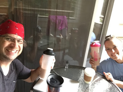 Chillin' on da porch with our protein shakes after a workout