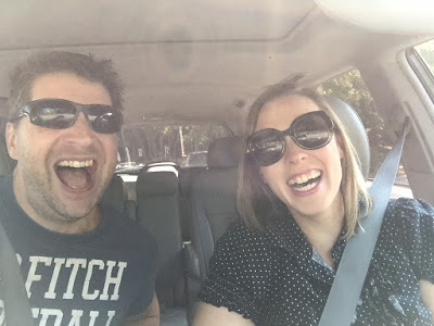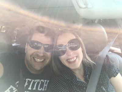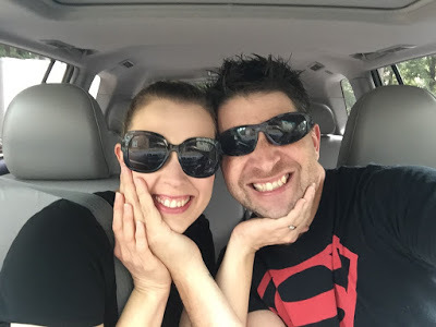 Headed out to a book signing. I love how you can see Deek's hand on my leg in my sunglasses' reflection. He always puts it there when he drives. It's a little thing, but it's a big thing to me. <3