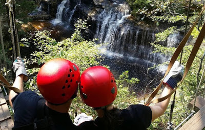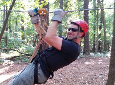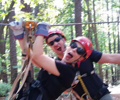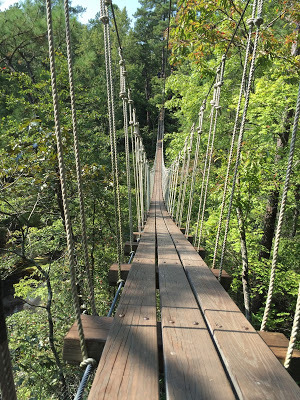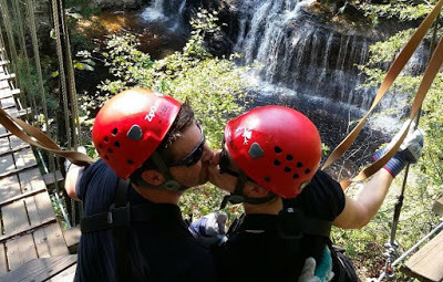 We found a pedestrian bridge in the South. How very Pacific Northwest!And guess what? The pounds are falling off. We're losing weight, eating in a way that works for our bodies, and getting/feeling fit. We have energy to do what we want to do and aren't limited by the extra weight. In fact, we just had an epic date weekend where we went ziplining over a waterfall. This course required a good amount of upper and lower body strength, and we completed it like a boss.