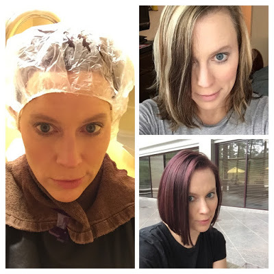 But, a few days before my appointment, I decided ombre wasn't "out there" enough for me. I spent last winter doing a hair experiment for my hairdresser in the PNW, which resulted in a slightly blue-greenish look, so I really wanted to love my hair this winter. And ombre just seemed too...plain. So, I talked to my Southern hairdresser, and we decided to go for a dark brown with violet highlights.