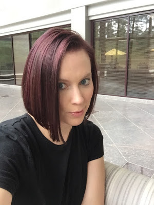 However, the purple is held in place with a red-violet. Well, my hair LOVES red. I have a lot of natural red and a significant number of redheads in my family. Soooo...the purple faded quickly and gave way to the red. I'm headed back to my stylist to get more dark brown and a blue-violet put in instead. Fingers crossed it works because I head off to Comic Con two days later! EEP!
