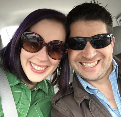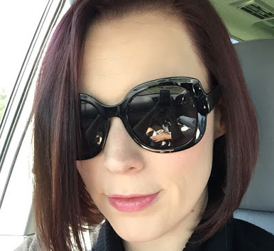 Headed out to a book signing. I love how you can see Deek's hand on my leg in my sunglasses' reflection. He always puts it there when he drives. It's a little thing, but it's a big thing to me. <3However, the purple is held in place with a red-violet. Well, my hair LOVES red. I have a lot of natural red and a significant number of redheads in my family. Soooo...the purple faded quickly and gave way to the red. I'm headed back to my stylist to get more dark brown and a blue-violet put in instead. Fingers crossed it works because I head off to Comic Con two days later! EEP!