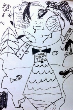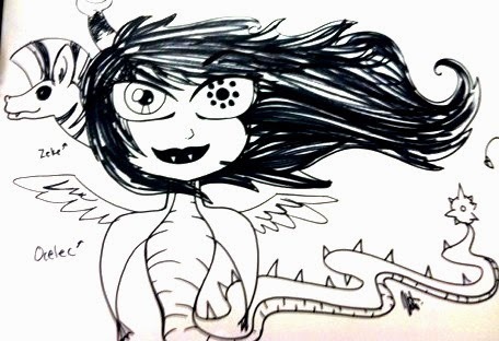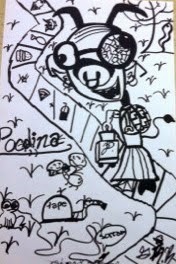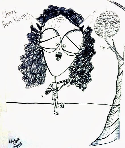 Character and story collaboration by the creative minds ofEnterprise Middle School's 3rd Period art class. Read about the activity HERE! Chanel, a foreign exchange student from Norway, danced under the dizzying disco ball that hung and spun from the skinny branch of the twisted tree. Chanel was exhausted, her arms ached and her legs burned. She wished more than anything she could this dancing.