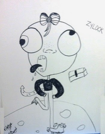 Whatever it was, the smell attracted hundreds upon hundreds of fish from all over the cookie-looking planet. Fish that were vicious (and bit his big toe) and could live for several days washed up on the land without a drop of water. It became such a problem that Zylock could barely walk without stepping in a puddle of fish.Zylock knew he wanted a better life than this. So one night after the passing of a storm, when the cookie shower turned into a mere drizzle of sprinkles, Zylock took the treasure chest looking box and went off in search of the secret factory. A factory so secret, not even Zylock knew where it was located.