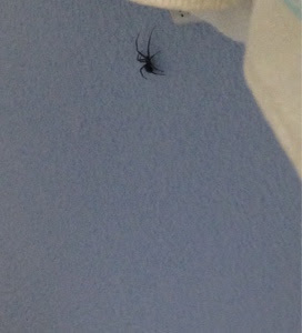 Yeah, that woke up real quick. There he sat. On my bathroom wall. Probably planning and plotting his next move. Do you see this thing? Can you tell how this practically screams for a freak out?