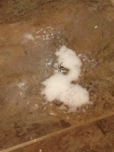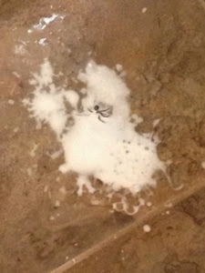 So I did what any spider-fearing girl would do...I moved very stealthy across my bathroom floor (don't want to alert this monster with an sudden moves) and ever so casually grabbed my nearest hair product.