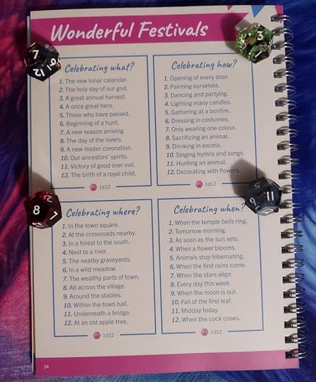 This month I decided to roll the dice on the Wonderful Festivals page in the Roll & Play book. You can use the dice I rolled, or if you have your own dice, you can roll on the chart yourself. Or heck, if you want to then you can just choose whichever option sparks your interest.