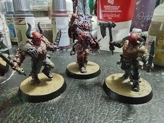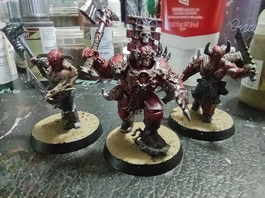 I have been trying to practice keeping my color schemes to how the character art is done by some of the official artists and in the books. Though I did take some liberties to make sure to add Blood for the Blood God technical paint for the Khorne soldiers. I am hoping to do some photos shoots and maybe some short fun videos with the figures soon enough and get them posted for you guys to see.