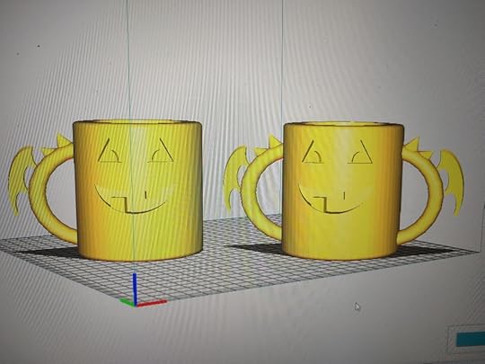 So the models I made were simple business card holders, one is made to look similar to an old gaming controller, one is made to look like an open book but i am still making tweaks to that model. I also made a halloween themed can cozy with two handles and a pumpkin face on it. I even made an alternate version with one handle. I have not tested the can cozy yet but I will try to have a photo of how that goes soon enough.