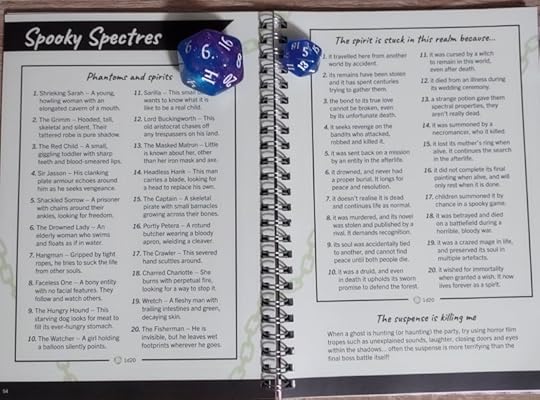 This month I decided to roll the dice on the Spooky Specters pages in the Roll & Play book. You can use the dice I rolled, or if you have your own dice, you can roll on the chart yourself. Or heck, if you want to then you can just choose whichever option sparks your interest.
