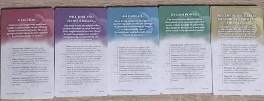 Next, we have The Oracle Story Generator by Nord Games. They have a Character Generator as well, but that one won’t be shipped out for another couple months. I’ve enjoyed playing around with these cards the past couple months, and look forward to doing even more with them in future. With this prompt, you can make it even more specific by either rolling a four-sided die for each card, or by simply choosing which option you like best.