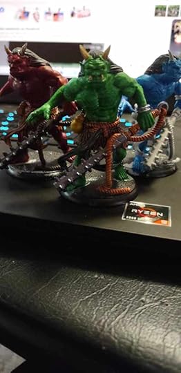 The oni figures are from Forbidden Fortress, a game that can stand alone or be used in connection to the original western themed Shadows of Brimstone. We have the Viking themed version of this game series I will be painting figures for soon enough.