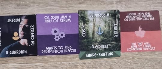 Finally, we have a new addition to the prompt generation: The Oracle Story Generator by Nord Games. They have a Character Generator as well, but that one won’t be shipped out for another couple months. I’ve enjoyed playing around with these cards the past couple months, and look forward to doing even more with them in future. With this prompt, you can make it even more specific by either rolling a four-sided die for each card, or by simply choosing which option you like best.