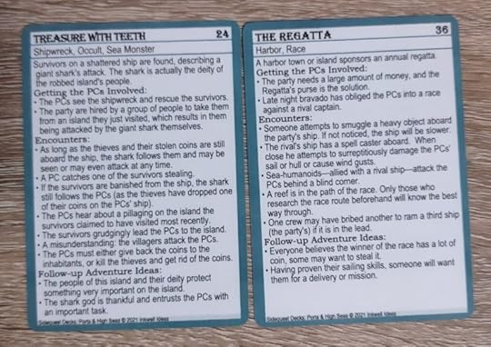 The Sidequest Decks from Inkwell Ideas are another wonderful accessory designed for TTRPGs, but can easily be used for writers as well. This time around I went back to the Political and Urban Fantasy deck, and again, I went with two options as prompt inspiration. You can use either option, and you can either use the basic concept at the top of the card, or you can use the various encounters at the bottom of the card to expand upon the adventure/story further.