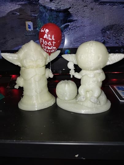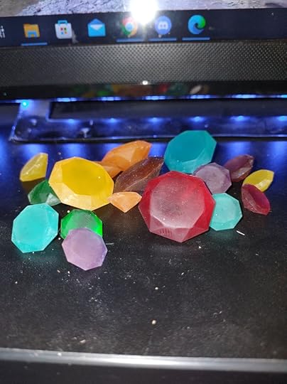 Printing: So printing of Cinderwings stuff has halted for now and I am trying to focus on some for fun prints. My first project was printing those weird horror themed Grogu. Those were fun and I am sure I can find a home for them at some point. Gemstones and a few figures for painting were also printed, the figures aren’t ready for pictures yet but until GenCon is over I am not sure when exactly I will get to those. A couple of the pictures have a clue to what my current pet project is with the printers. I am hoping to have the time to get the others running so I can try and finish the printed parts of the Goblin Slayer cosplay.