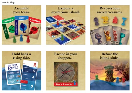 Capture the Four Sacred Treasures Before the Island Sinks!Your team of adventurers must work together to keep the Forbidden Island from sinking as you seek the four treasures hidden within. The mission is carried out using different combinations of Flood, Treasure, and Adventurer Cards on the 24 tiles that make up the Forbidden Island. Once you’ve captured each treasure using the appropriate cards, you must make it to Fools’ Landing and escape by helicopter in order to win. If the island sinks before you complete your tasks, the mission ends in defeat.