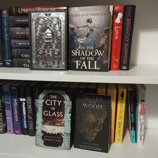 Image 2: Odd Spirits by S.T. Gibson, In the Shadow of the Fall by Tobi Ogundiran, The City in Glass by Nghi Vo, Silver in the Wood by Emily Tesh