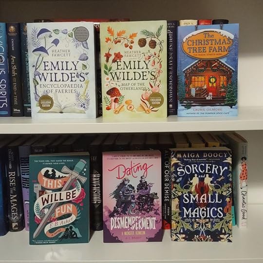 Image 4: Emily Wilde’s Encyclopaedia of Fairies by Heather Fawcett, Emily Wilde’s Map of the Otherlands by Heather Fawcett, The Christmas Tree Farm by Laurie Gilmore, This Will Be Fun by E.B. Asher, Dating & Dismemberment by A.L. Brody, Sorcery and Small Magics by Maiga Doocy