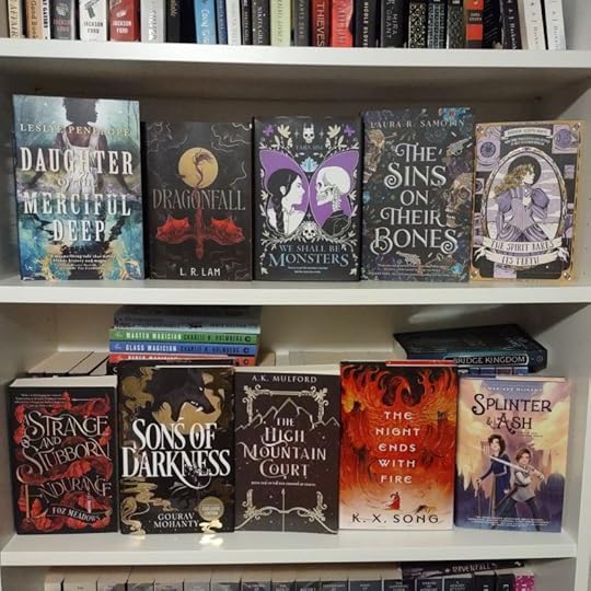 Daughter of the Merciful Deep by Leslye Penelope, Dragonfall by L.R. Lam, We Shall Be Monsters by Tara Sim, The Sins on Their Bones by Laura R. Samotin, The Spirit Bares Its Teeth by Andrew Joseph White, A Strange and Stubborn Endurance by Foz Meadows, Sons of Darkness by Gourav Mohanty, The High Mountain Court by A.K. Mulford, The Night Ends With Fire by K.X. Song, Splinter & Ash by Marieke Nijkamp