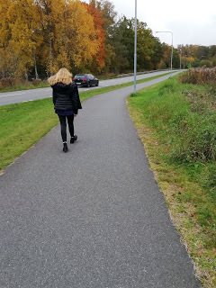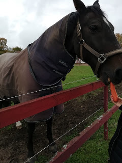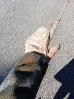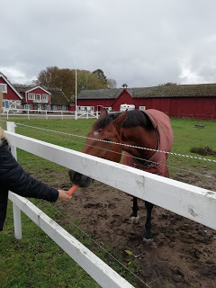 We walked to my parents' house today. Mom gave us 2 carots so we could feed the horses.