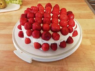 Mom baked a strawberry cake today.