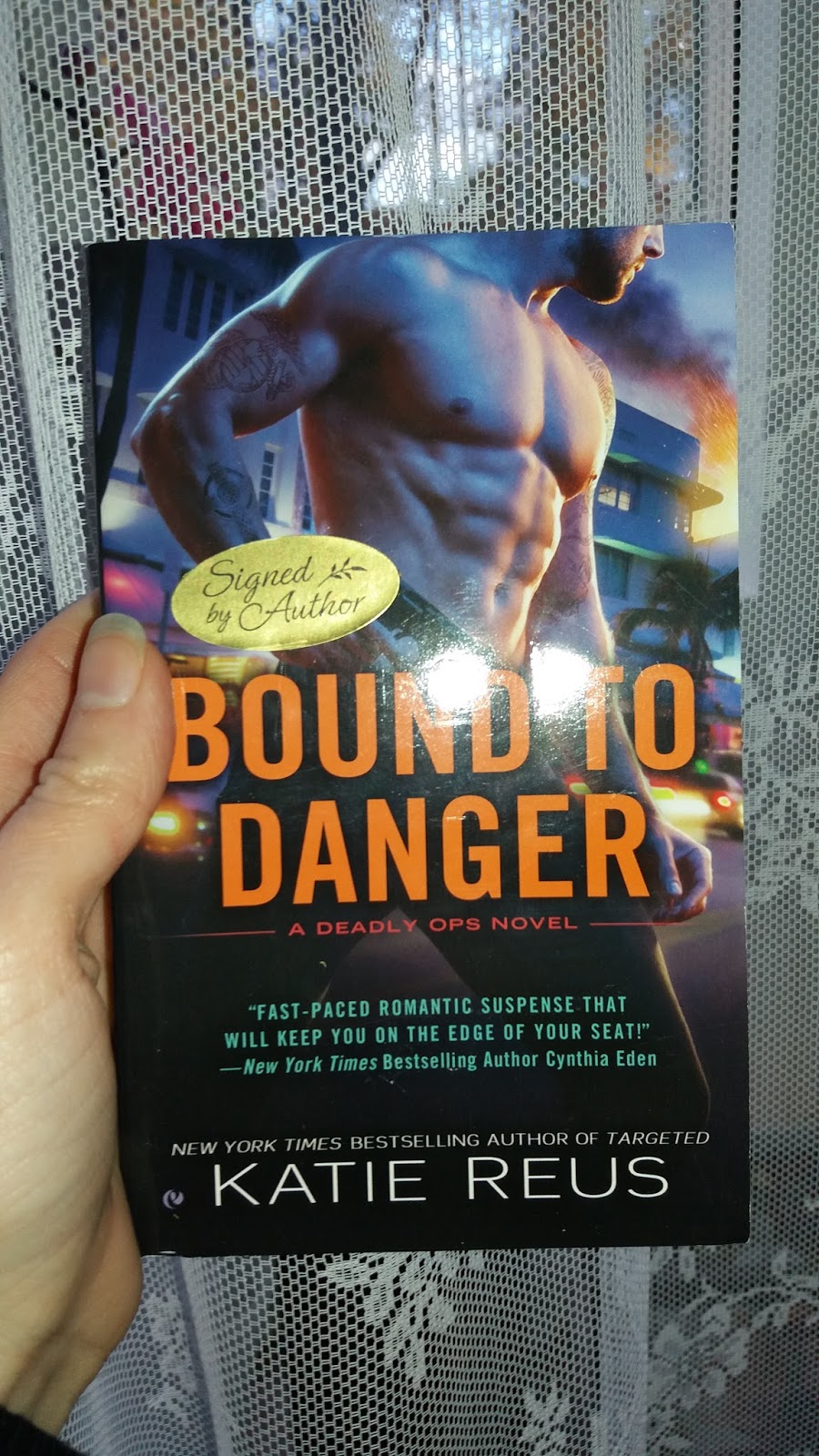 Katie Reus sent a signed copy of Bound to Danger and it arrived November 6th.I was thrilled because it's one of my favorite books! :)