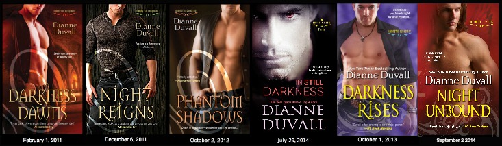 Dianne Duvall is the New York Times and USA Today Bestselling Author of the Immortal Guardians paranormal romance series and The Gifted Ones series. Her books have twice been nominated for the RT Reviewers' Choice Award for Best Vampire Romance and are routinely deemed Top Picks by RT Book Reviews, The Romance Reviews, and/or Night Owl Reviews. Reviewers have called Dianne's books "utterly addictive" (RT Book Reviews), "fast-paced and humorous" (Publishers Weekly), "extraordinary" (Long and Short Reviews), and "wonderfully imaginative" (The Romance Reviews).