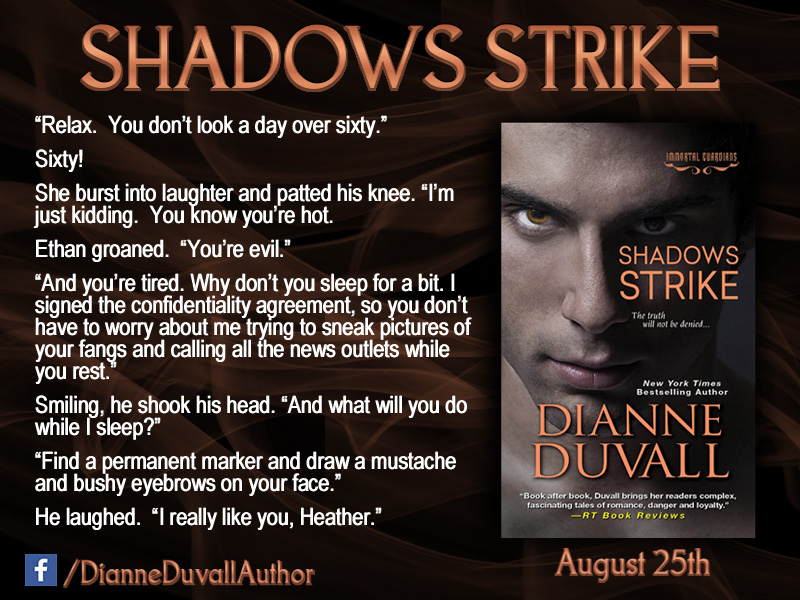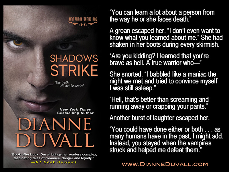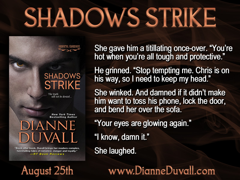 Bestselling author, Dianne Duvall, returns with the sixth book in her exciting and addictive Immortal Guardians series - Shadows Strike!