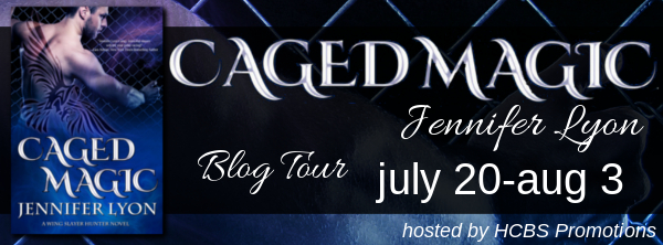 Linc Dillinger is a Wing Slayer Hunter whose sexy, rich, bad-boy charm hides a treacherous betrayal that left him emotionally scarred. As a result he risks his life to protect innocents, but is incapable of love—until he meets a beautiful witch who can save his cursed soul. Risa’s fierce courage and loyalty reaches past his barriers and he begins to believe she has the magic to free his caged heart.