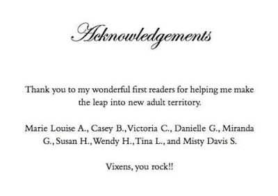 Yay!:)It is the first time for me!!!I was one of the first to read Say it Sexy and to my surprise I was mentioned in the Acknowledgement.<3Thank you so much,Virna!