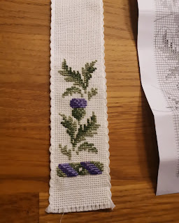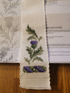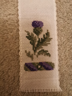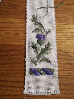 More progress with the Victorian Thistles cross stitch bookmark! :) I hope to finish one more thistle this week! :) Many thanks to mom who helped me!