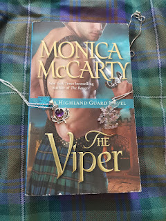 The Viper by Monica McCarty is one of my favorite books! 😍🥰 The Scotland map necklace is from Weebox and the thistle necklace is from Two Skies. 🏴