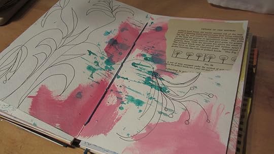 Page in progress.You don’t need to go in order. Flip through the pages until you find something you want to work on that day. Continue flipping back and forth and layering each day.
