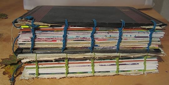 I began by using purchased notebooks and journals and have recently been smitten with making journals from old books, found materials, and artwork that didn't quite cut it.