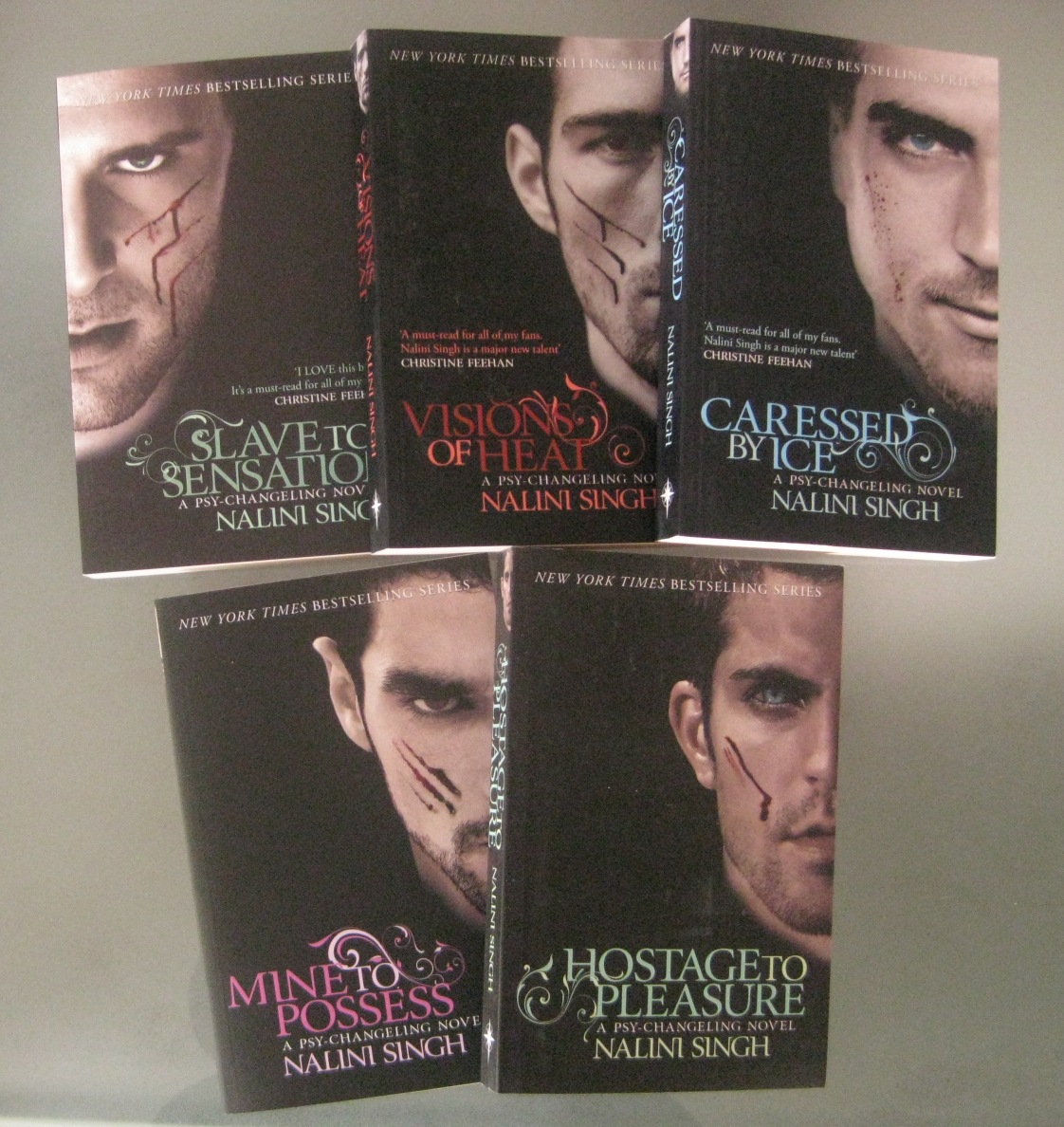 The next giveaway to celebrate 10 years since Nalini sold her first book to a publisher, is the UK/Aust/NZ editions of the first five Psy/Changeling novels.