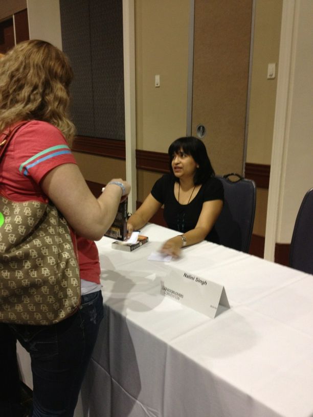 After lunch, Jeaniene and I were on a panel with Charlaine Frost (who is incredibly nice). We had a blast, and I think the audience did, too - so many people attended that the hotel staff had to enlarge the room by folding back a wall. So as someone said, we literally brought down the wall! The moderator Morgan Doremus, was brilliant. You can read a detailed writeup of the panel on the RT blog.