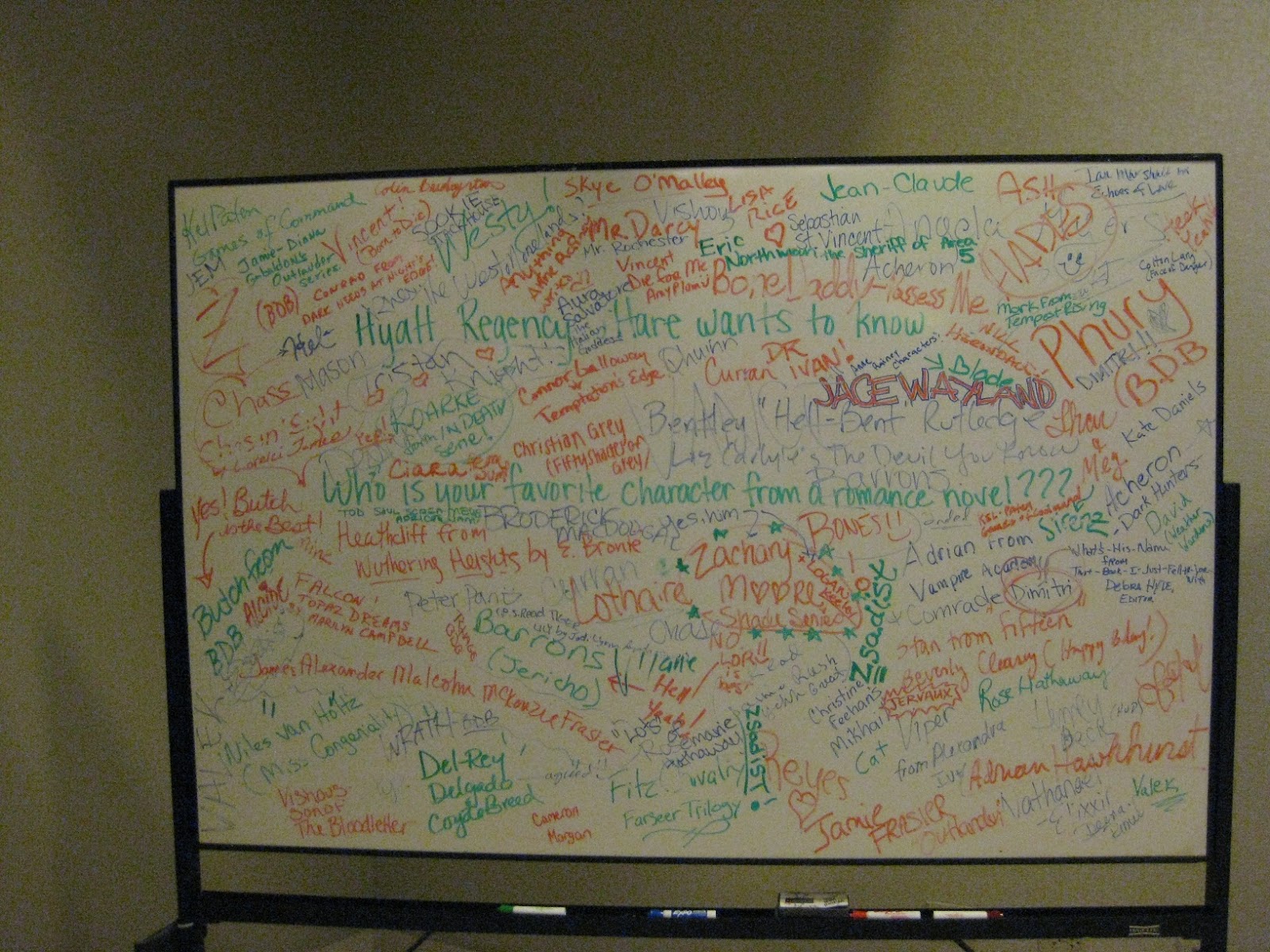 I saw this board toward the end of the convention, and thought it was such a fun idea. If you click on the shot, you can enlarge it. Basically, it asked people to share the names of their favorite characters.