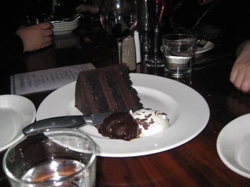 This is a picture of Julie James' divine chocolate cake. I have no photo of Julie, but really, it's all about the cake. Julie found out she hit the NYT and USA Today bestseller lists while at the convention, so it was awesome being able to celebrate with her. (I split a chocolate ice-cream bar with Sarah from SBTB and it was delish.)
