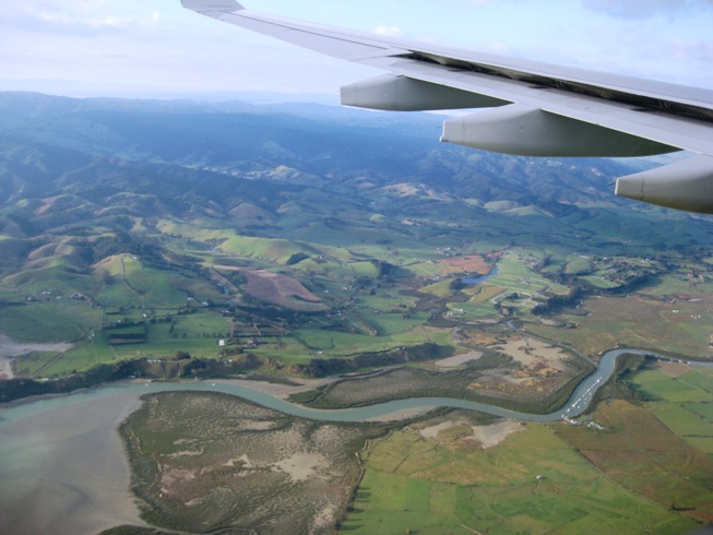 I'm home! We had such a stunning view coming in to land yesterday morning - I think the approach to Auckland Airport (above) is one of the most beautiful in the world. Once, I even saw horses running in the paddock below!