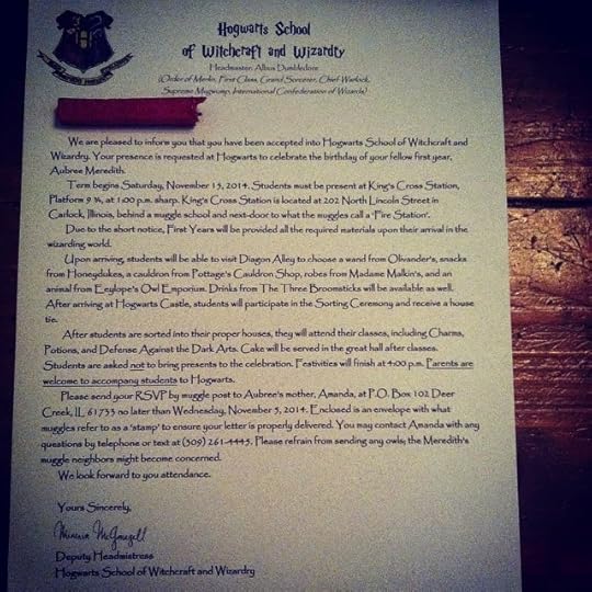 Of course, they had to have owl stickers so they'd look like they were delivered by owl post.Then they had to have to exact 'address' of her classmates.Then they had to have wax seals.Then I had to super-nerd the invites so they sounded like actual Hogwarts acceptance letters.Of course I did.