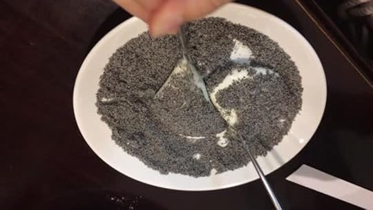 Here’s a short video of my wife coating it with black sesame powder. (The people sitting opposite us had peanut powder with theirs, as you can see in the top right-hand corner.)