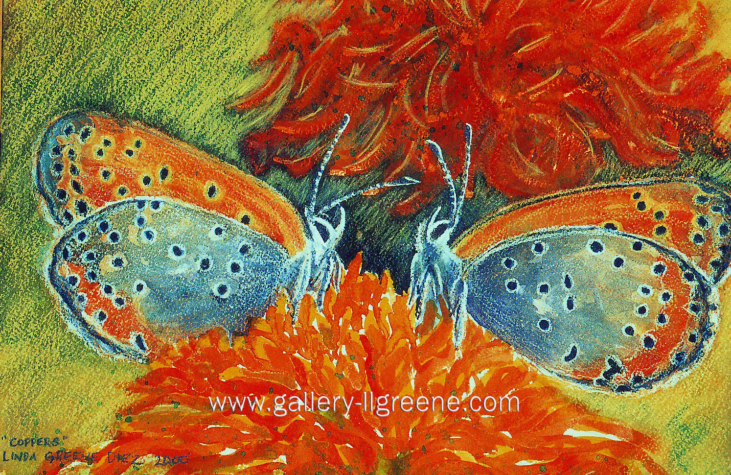 Pastel and acrylic painting, “Coppers” by Linda Lee Greene