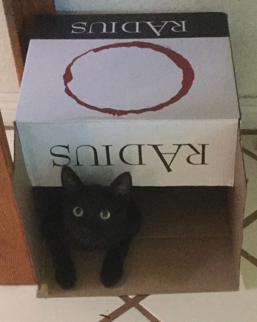 I looked at the kitty and he stared back at me. “Great!” I said, not feeling great at all. “Let’s find a box.”