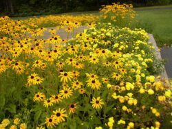 Rudbeckia is the fancy name for black eyed Susie’s. I have a wild volunteer that grows by the old chicken coop. I have to constantly remind workers to not pull it up as a weed. As summer wanes, it will become filled with many little ‘Susie’s.’ Problem is it decides where it will grow. Not me. I pick a few; I can’t resist. But I leave most to reseed. I am then am surprised where it will pop up next. I feel so favored to have this perennial wildflower. There are lots of choices of cultivated Rudbeckias. They grow readily from seed.