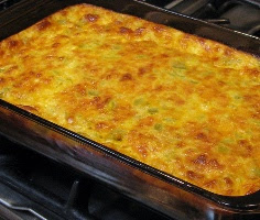 Pour mixture into an ungreased 9 x 13-inch (33 x 22cm) glass baking dish. Bake 1 hour or until a knife inserted in the center has no egg clinging to it.